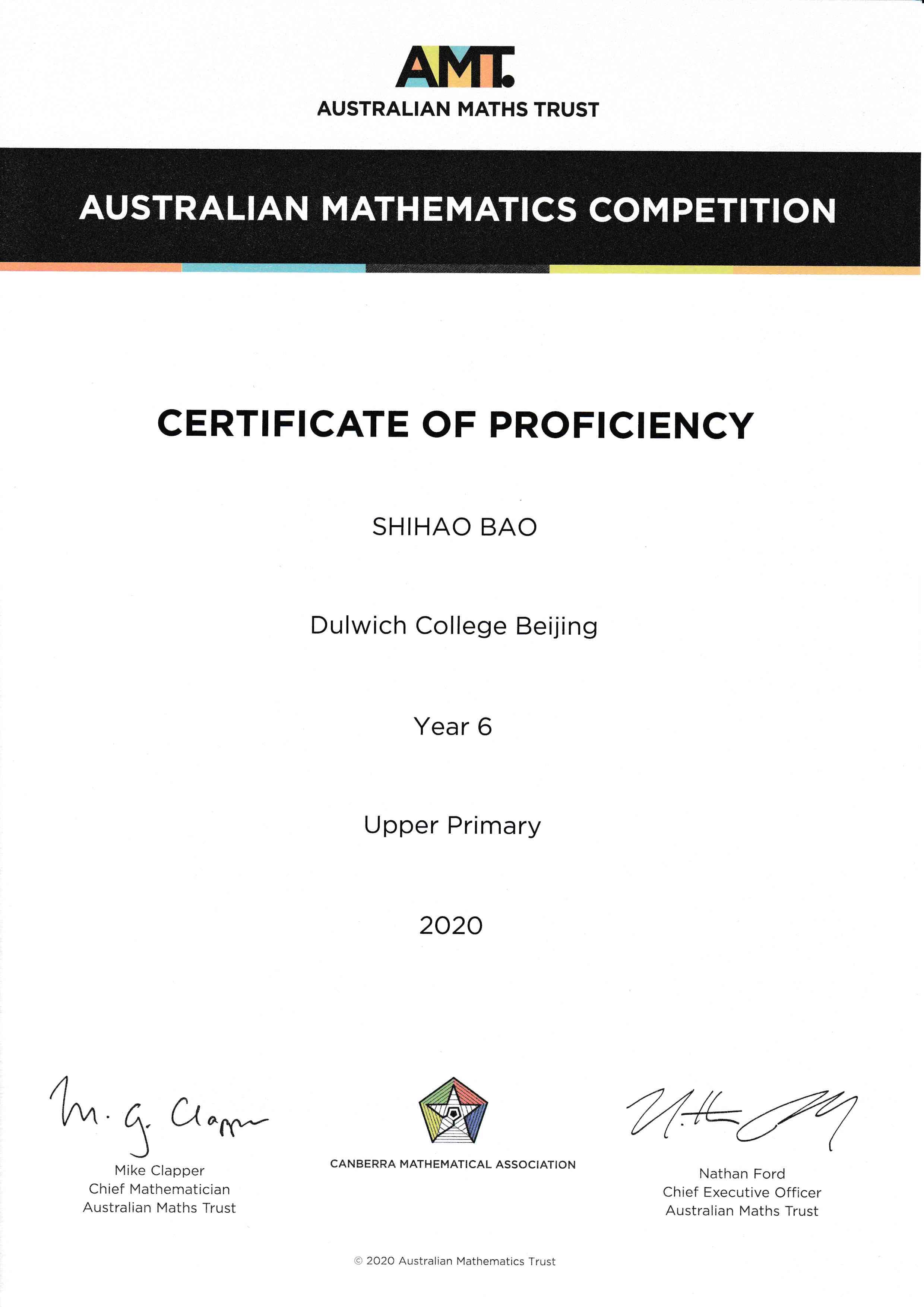 2020 Australian Mathematics Competition: Certificate of Proficiency