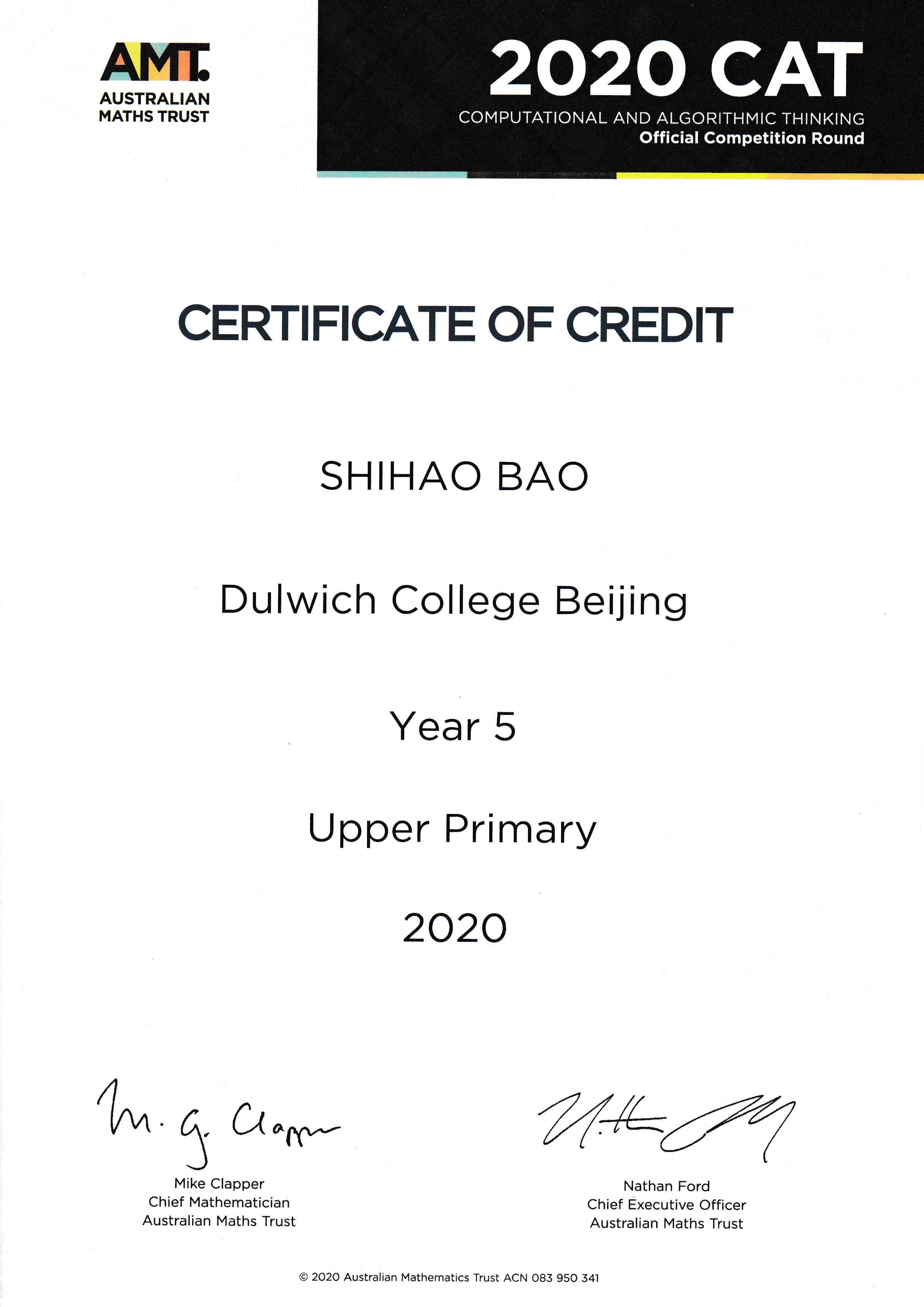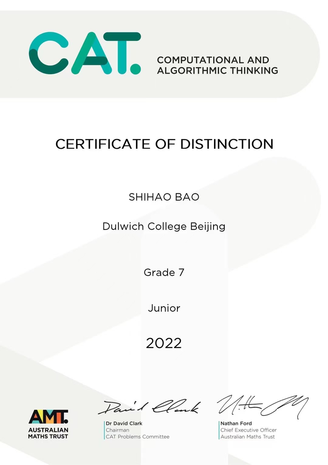 2022 Computational and Algorithmic Thinking (CAT) : Certificate of Distinction