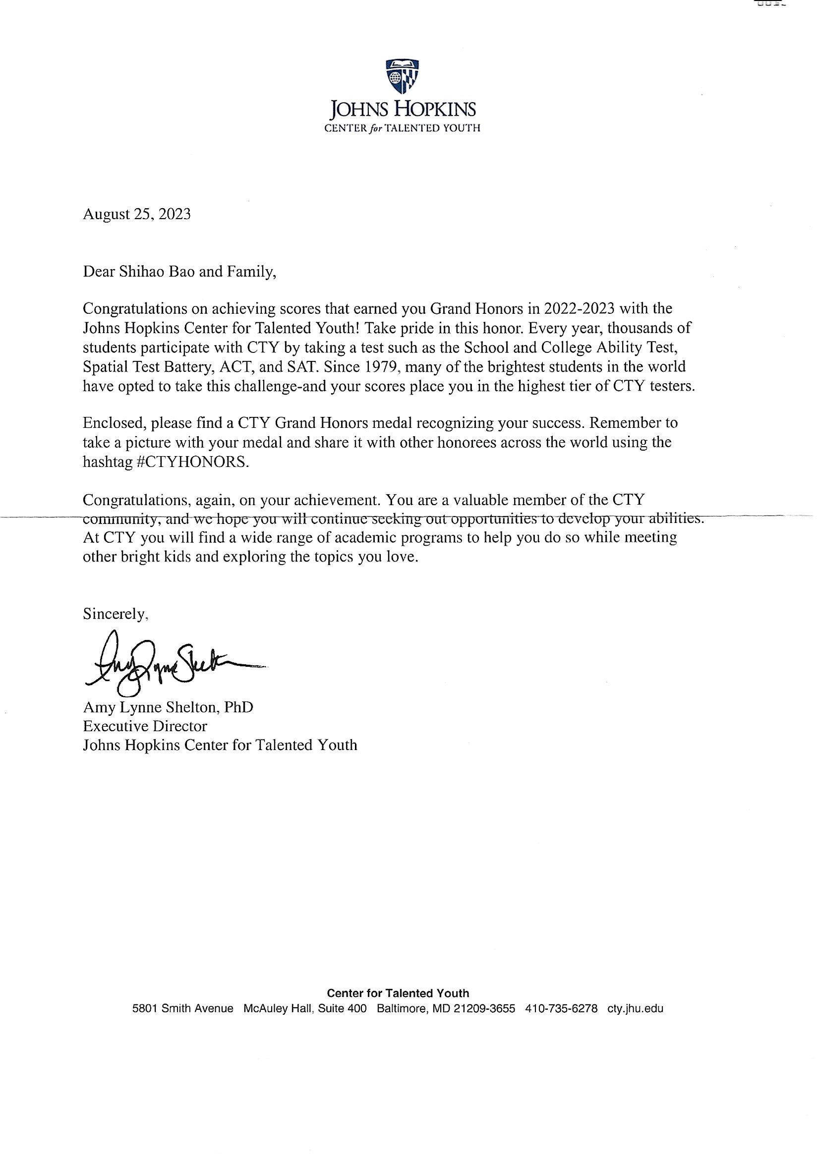 2022-2023 Johns Hopkins Center for Talented Youth Grand Award