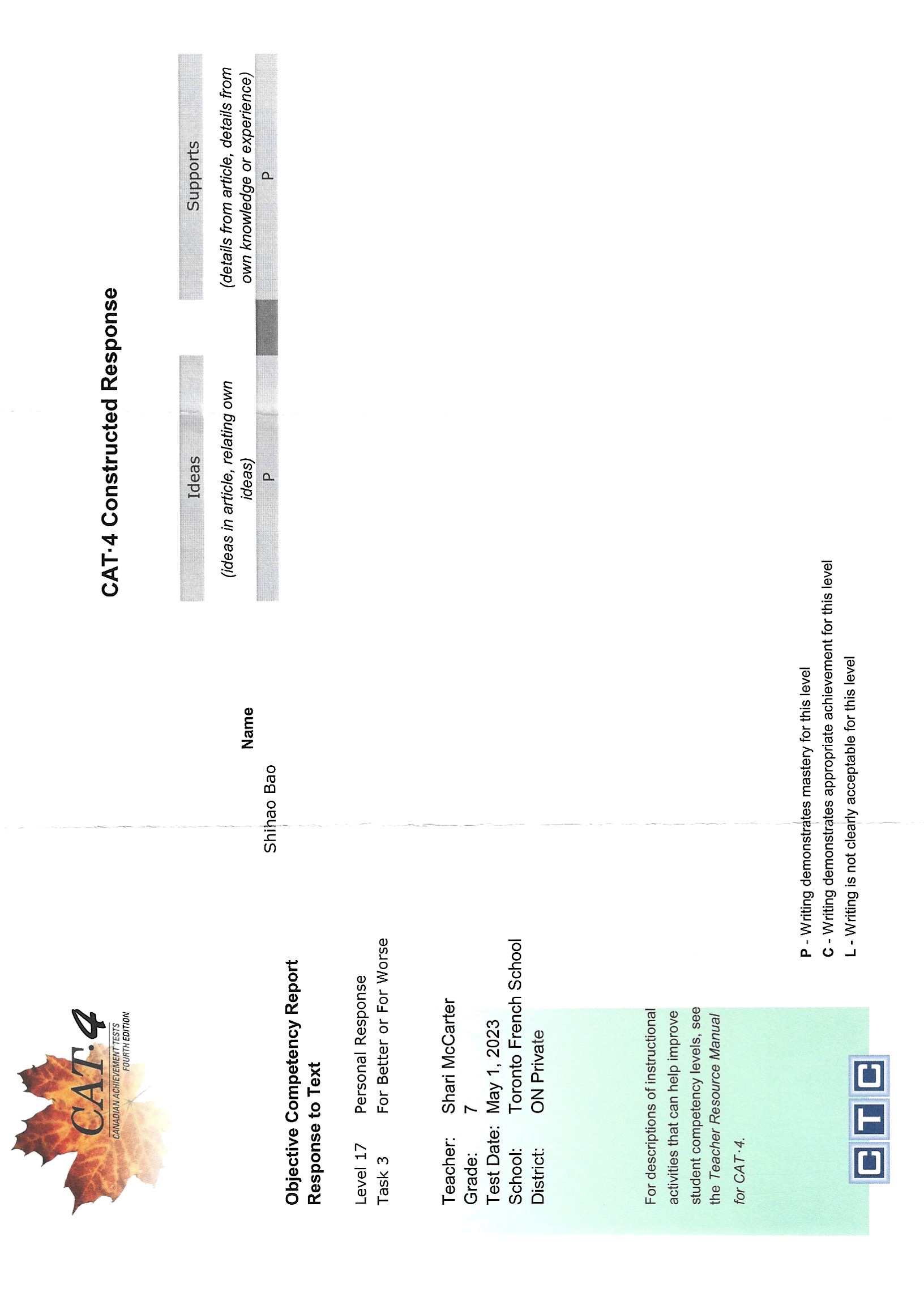 2022-2023 Canadien Achievement Test 4 Mathematics 9